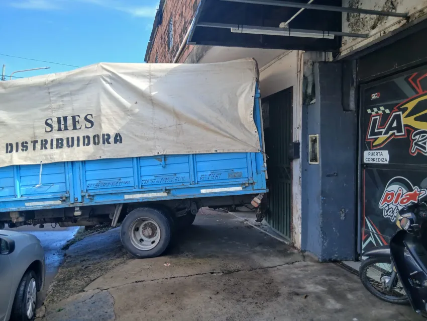 El conductor realizaba maniobras para descargar mercadería cuando advirtió el desperfecto mecánico. Para no colisionar con un vehículo que circulaba detrás, decidió subir a la vereda, impactando contra un auto estacionado y el portón de una vivienda.